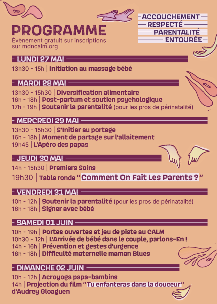 À l’occasion de la Semaine Mondiale pour l’Accouchement Respecté, dont le thème est cette année « Hard Data, Mother’s Choice, Flexible Care », le CALM organise de nombreux évènements du 27 mai au 2 juin 2024.