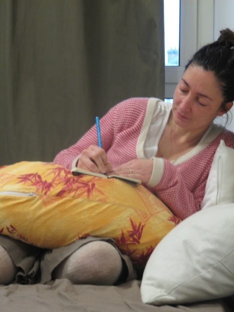 Il y a déjà eu 3 ateliers d’expression par l’écriture (sur les 5 prévus) pour que les jeunes et aussi futurs parents (ayant été suivis au Calm ou en cours de suivi) puissent faire le récit de leur (future) mise au monde, se souvenir en mots et en sensations. Un atelier d’écriture est une bulle, c’est un lieu où on réinvente sa propre histoire.